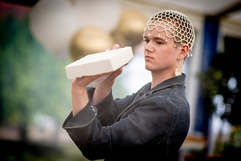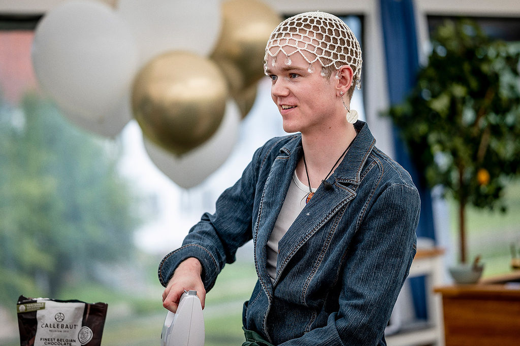 Han går på kunst & design-linjen på Dansk Talentakademi i Holstebro. Hvis han ikke kan finde de bukser, han drømmer om i butikkerne, syr han dem selv. Og når han laver kager, er det ikke bare desserter, men små kunstværker.