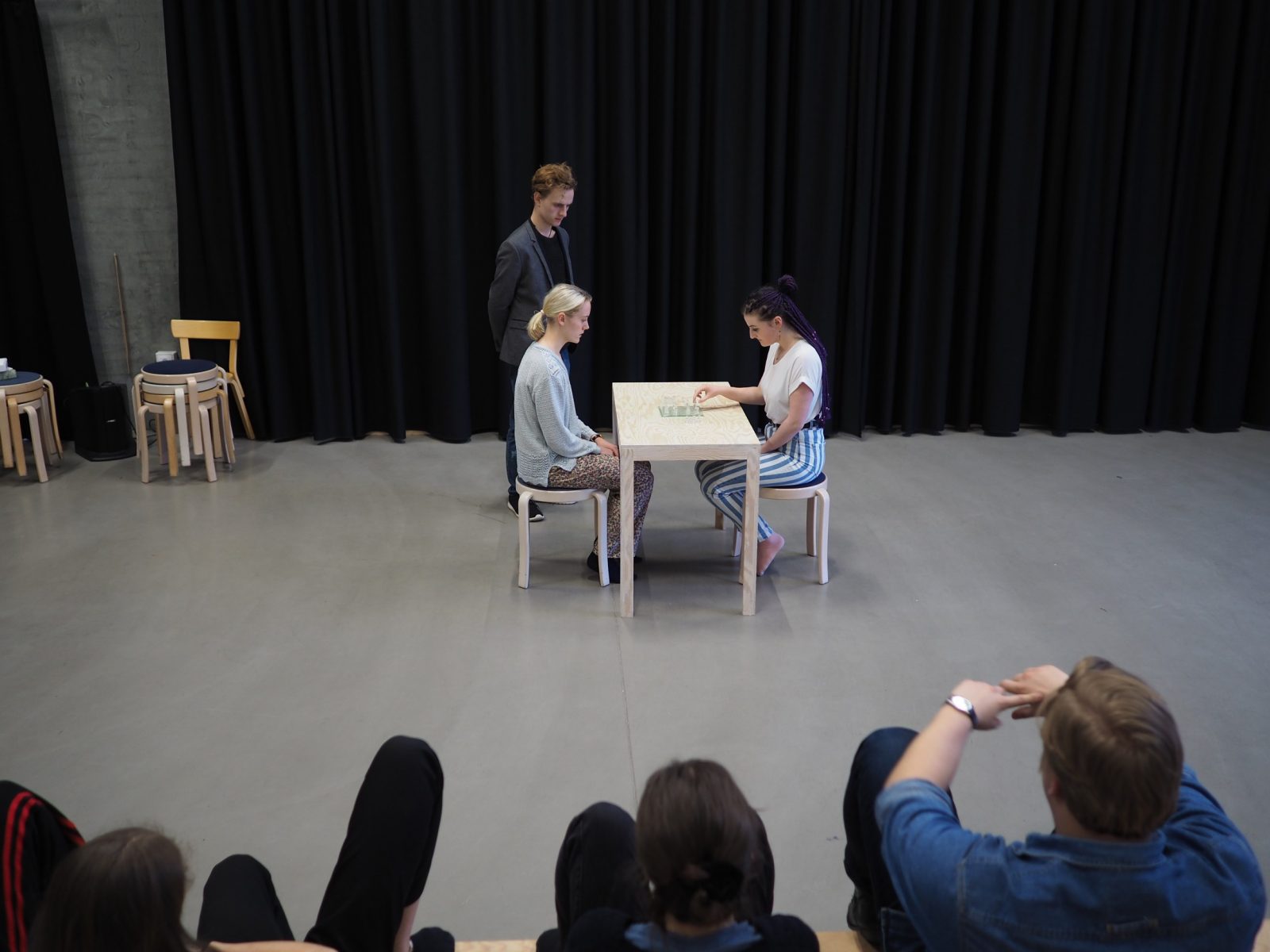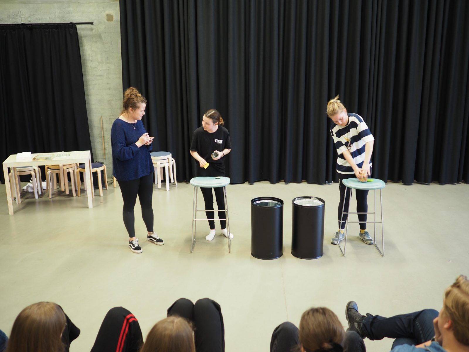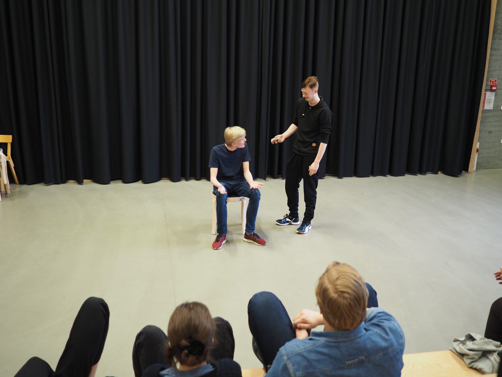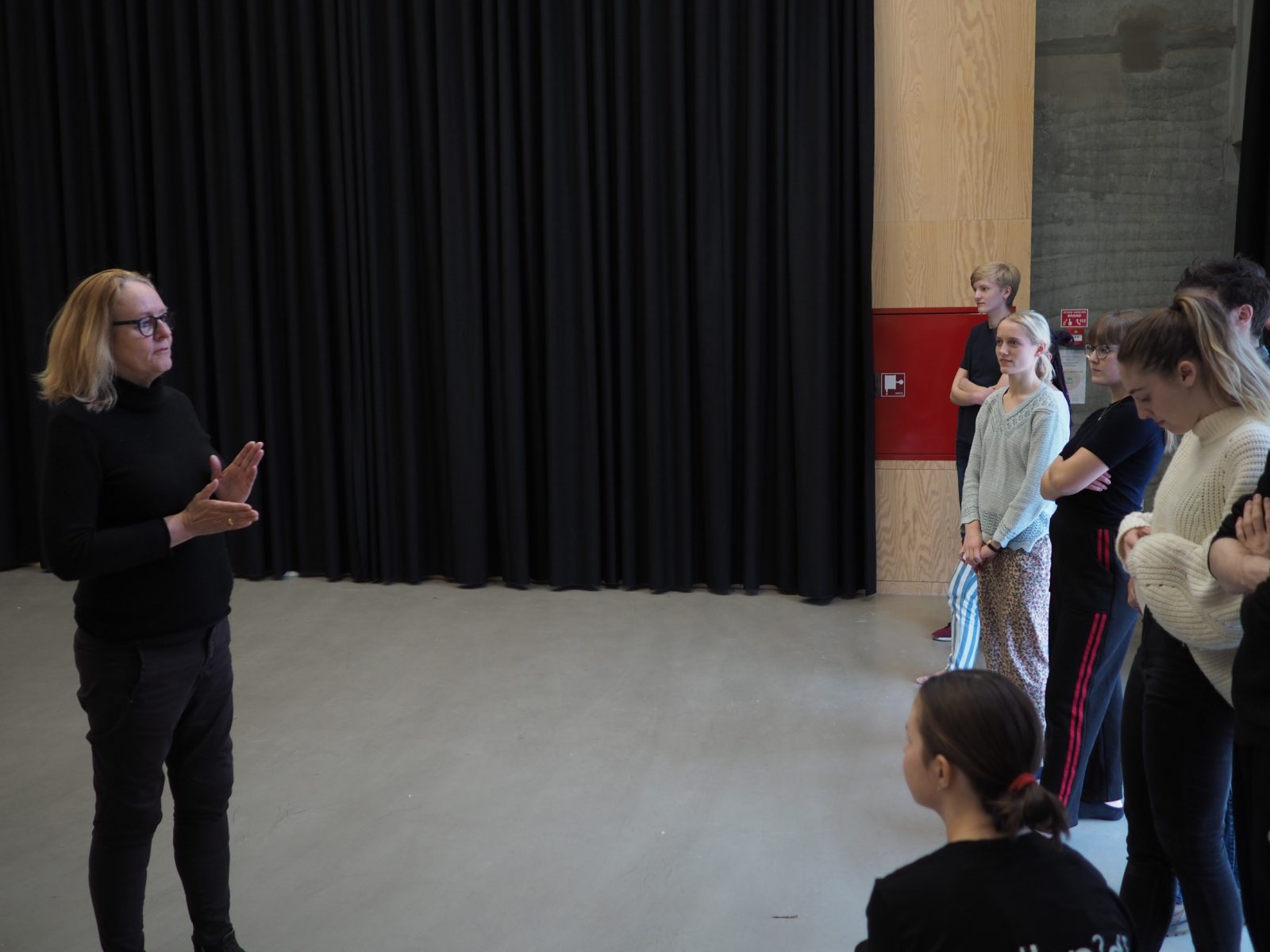 Elever fra Musical og Teaterlinjen har netop afsluttet et workshop-forløb, hvor gæstelærer Eva Maria Zacho, som er skuespiller, sceneinstruktør og konsulent, har stået for dramaundervisning.