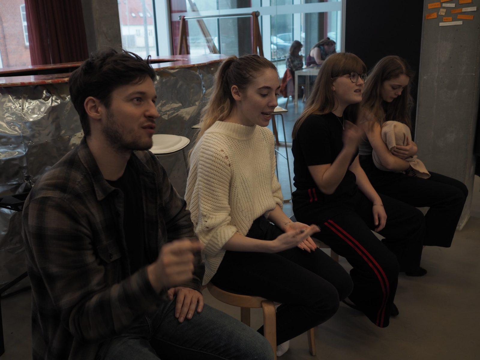 Kasper, Malene, Trine og Benjamin er nogle af vores elever fra Musical og Teaterlinjen. De har været rigtig glade for forløbet med Eva Maria Zacho: