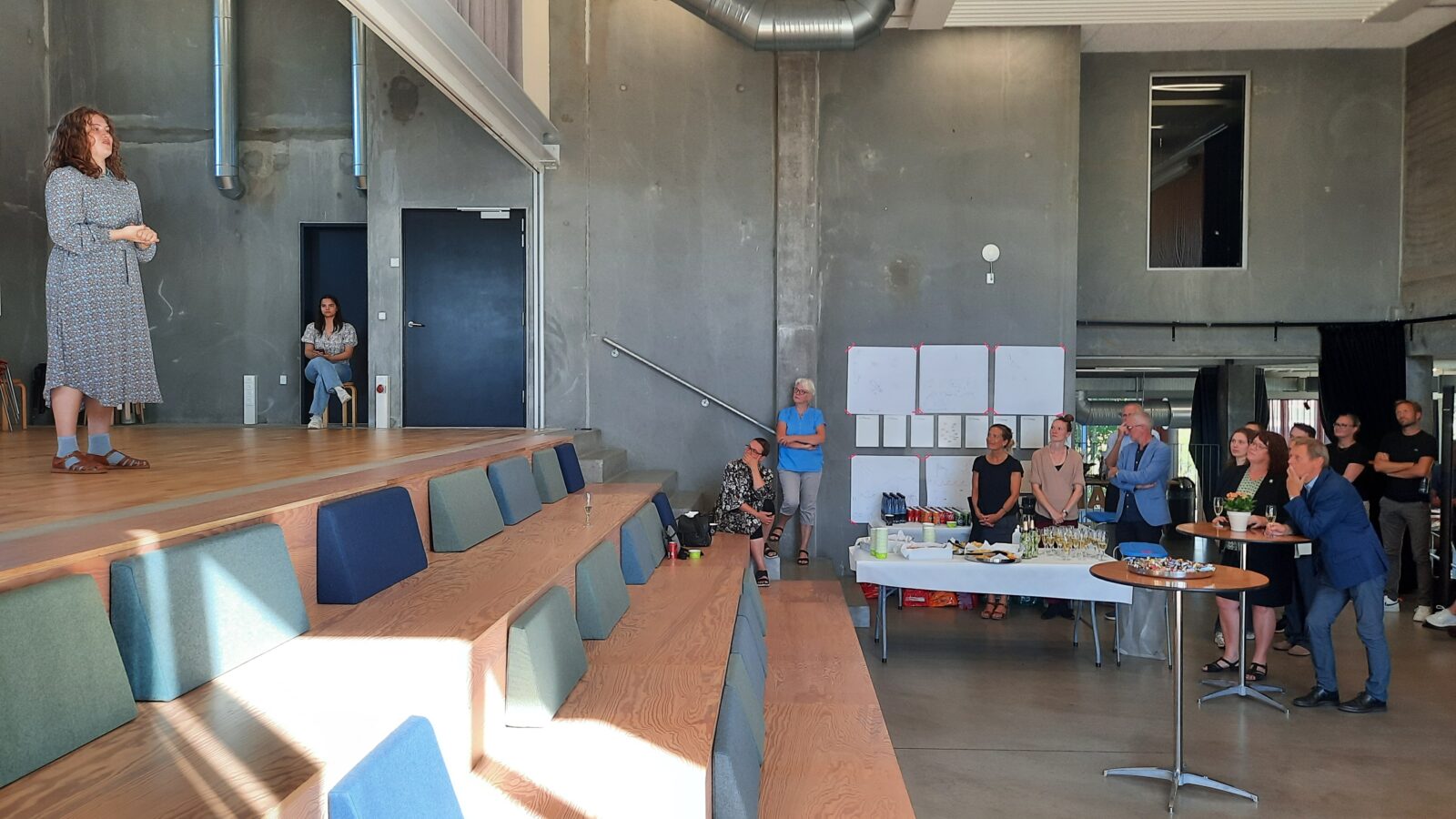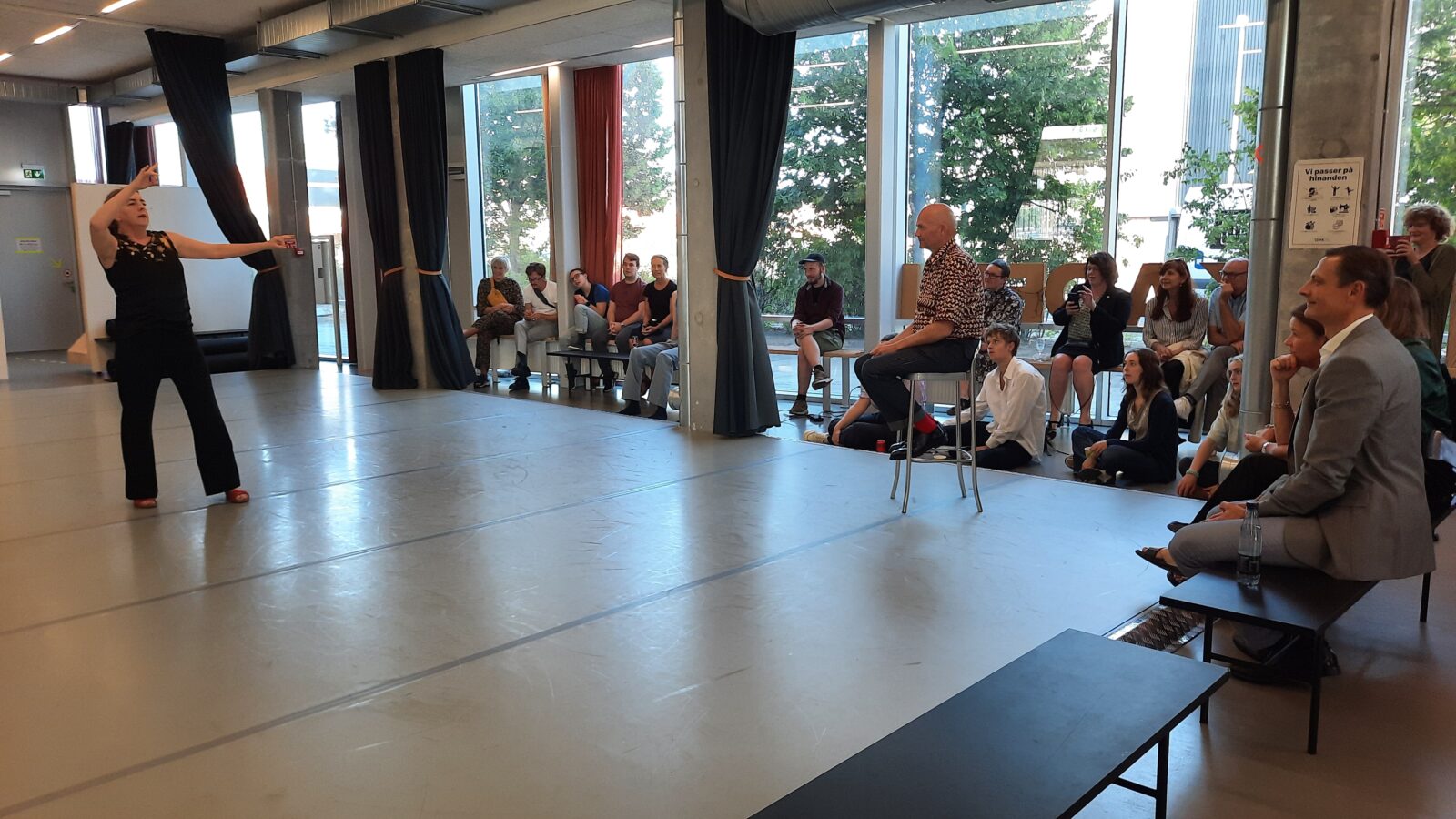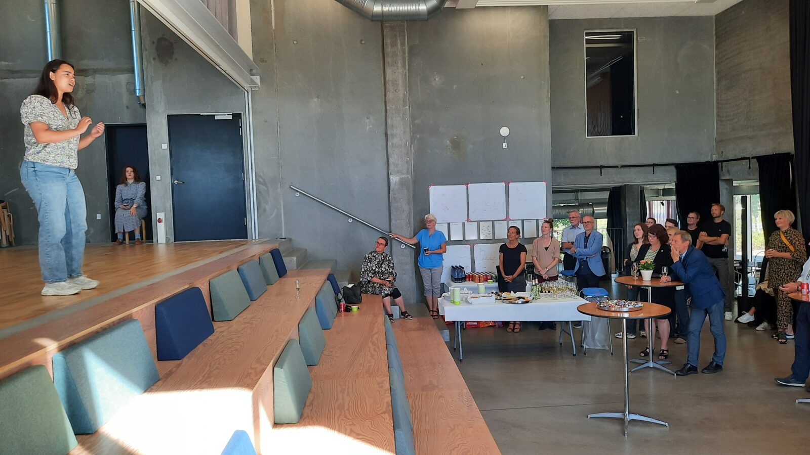Til receptionen var der flere kunstneriske indslag af elever fra Musical & Teaterlinjen og fra Danselinjen, samt en overraskelse fra Nordisk Teaterlaboratorium – Odin Teatret. Festlighederne markerede et farvel til en meget vellidt Søren Taaning, som er tiltrådt som rektor for Det Jyske Kunstakademi d. 1. september.