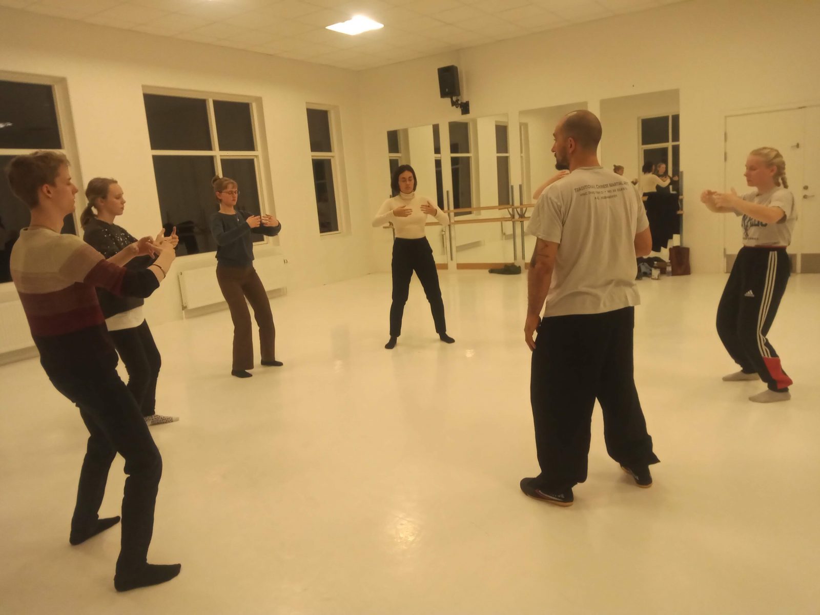 I Kunstteater opstår værkerne ud fra en grundlæggende tværfaglig og samarbejdende præmis. I denne workshop á tre gange undersøger kampsportskoreograf og Tai Chi-udøver Tao Thykier Makeeff og Maria Hesselager (linjeansvarlig fra Forfatterlinjen), hvordan kropsfornemmelse og karakteraflæsning af andre (Er nogen truende? Ked af det? Hvor sidder det i kroppen, og hvordan aflæses det fysisk?) er centrale elementer i Tai Chi såvel som i skønlitteraturen. I et mix af fysiske øvelser og skriveøvelser træner vi registreringsevne (både hvad angår egne og andres reaktioner) og bruger det som redskab til at øge ens kropsfornemmelse og skabe karakterer. Vi vil desuden arbejde med enkle bevægelsesbaserede systemer for at fremsige tekst for at undersøge hvad en fysisk frem for en psykologisk indgangsvinkel til karakterarbejde kan lede til.